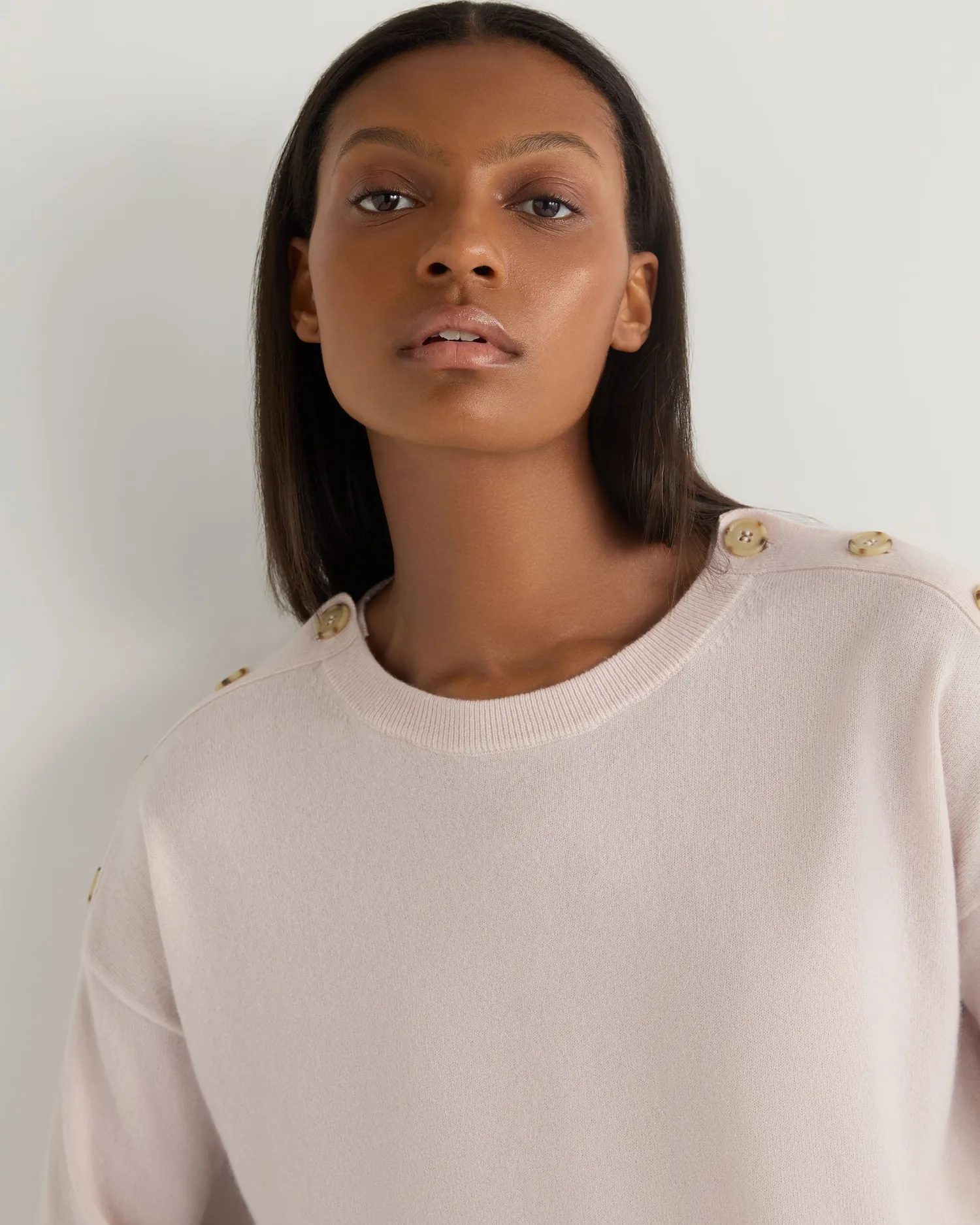 Sure to be a popular sweater for this season, with button detail on both shoulders. Made from 100% organic Mongolian cashmere of the very highest quality- Elegant plain knit stitch with matching ribbing on cuffs and hem- Looser fit casual style for leisurely weekends- Button detail on both shoulders, can be worn open or closed- 1ply- Model is wearing size Small- Care: Hand Wash Organic cashmere: organic dyes and detergents, free from fertilizer and pesticides, find out more heren