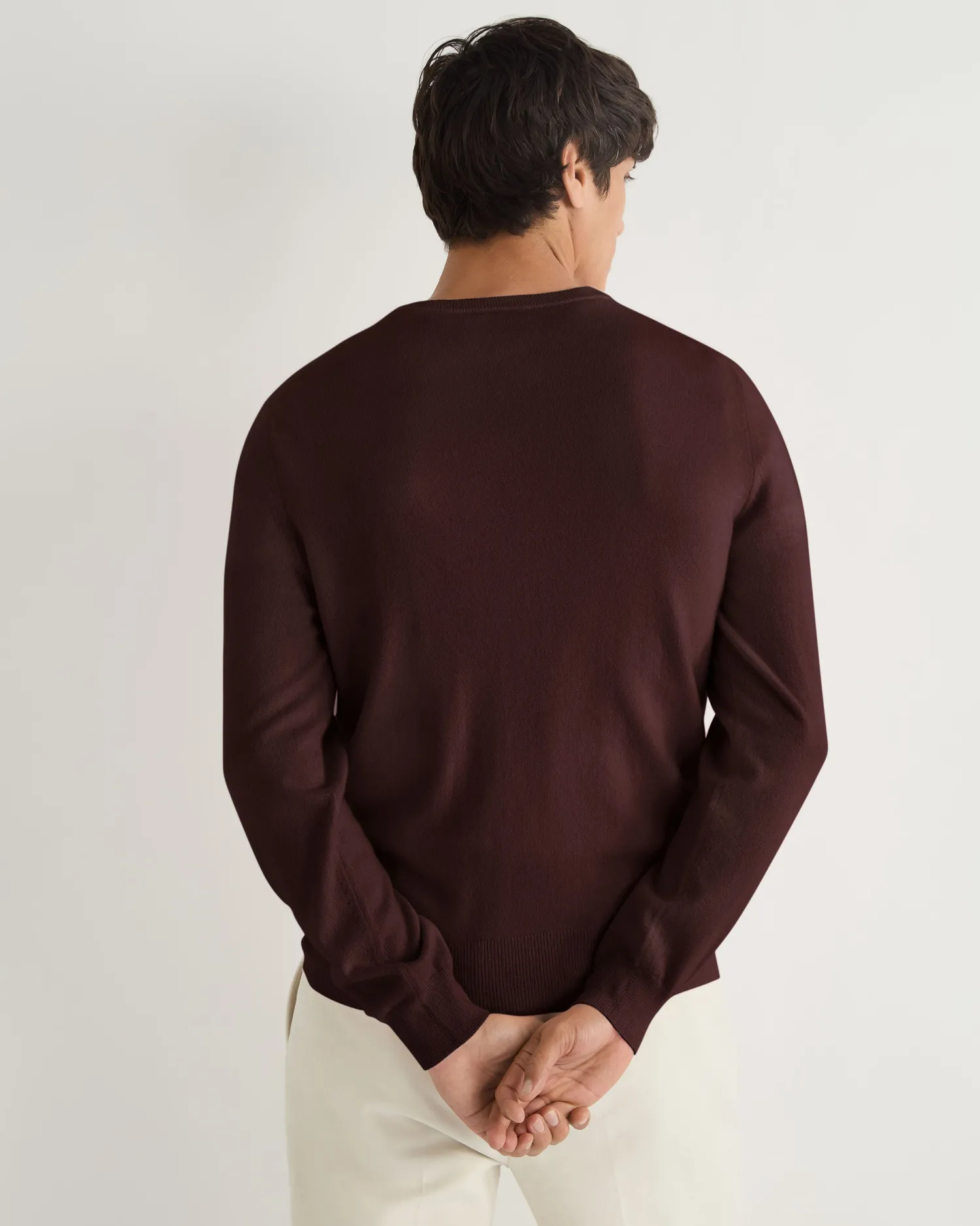 N.Peal’s best selling Oxford round neck cashmere sweater in 1ply, true luxury in cashmere. Crafted from 100% Mongolian organic cashmere – The most famous N.Peal sweater out there! – As worn by the character of James Bond in Skyfall – Extremely popular piece due to its 007 credentials – A luxurious sartorial staple – Perfect for all seasons – Sells out regularly, particularly in Blue Wave! – 1ply – Model is wearing size Medium – Care: Hand Wash Organic cashmere: organic dyes and detergents, free from fertilizer and pesticides, find out more here