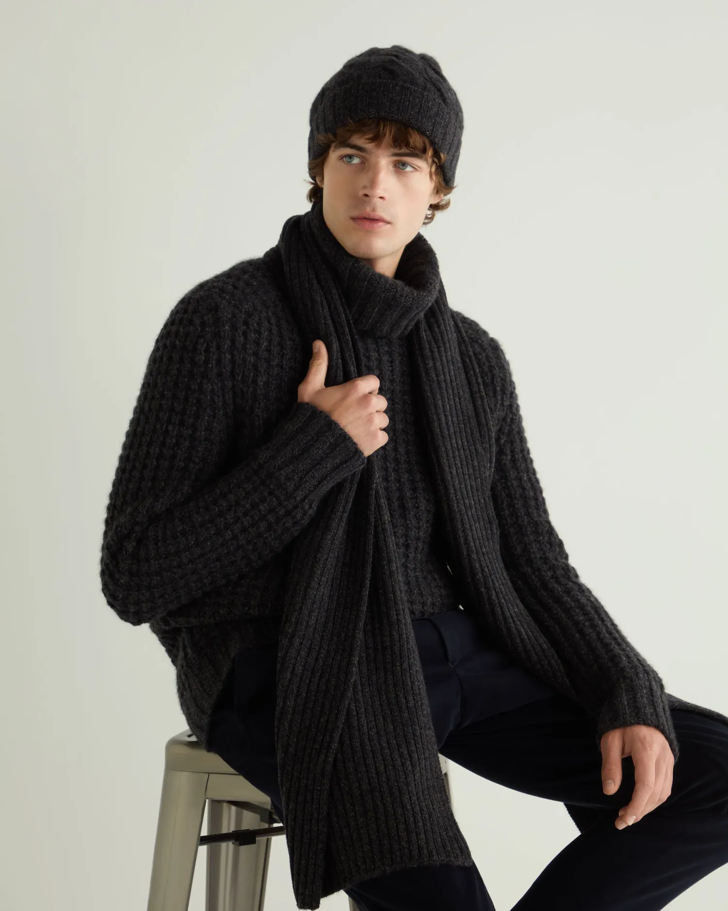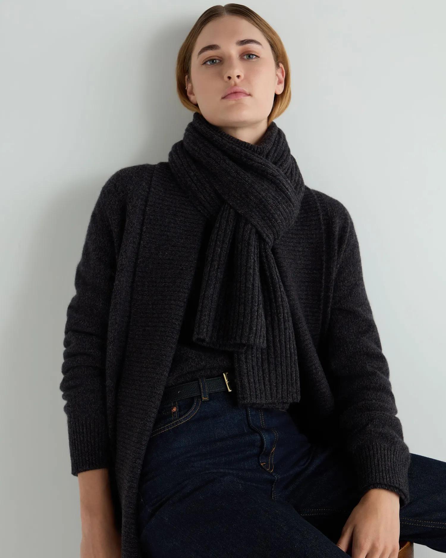 A wonderfully soft and comfortable cashmere scarf. n Made from 100% Mongolian cashmere Superbly knitted in a luxurious rib pattern Chunky and generous in cashmere content Measures 30x192cm 4ply Care: Hand Wash