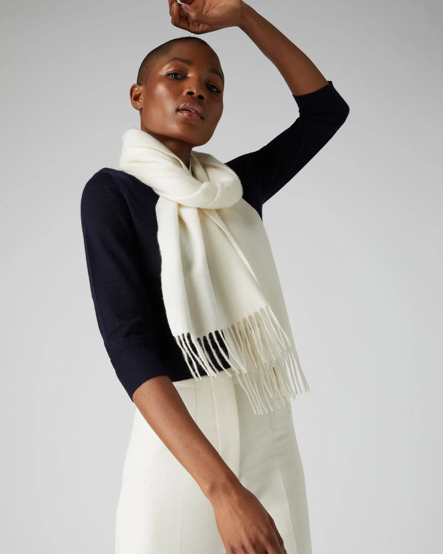 Delight in the N.Peal large woven cashmere scarf in an exciting array of colours. 100% Mongolian Cashmere – Generous in size and long in luxury! – Measures 180x37cm – Attractive traditional fringe edging – Would make a perfect gift – Beautiful colours available- Care: Dry Clean OnlynFind our range of Cashmere Scarves here.