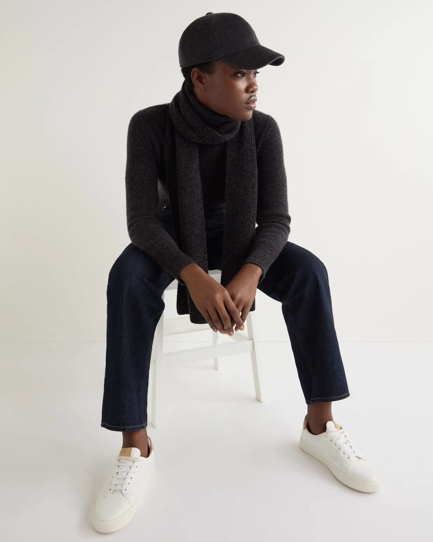 This amazing cashmere ribbed scarf looks the part and is super warm and cosy.n Made from 100% Mongolian cashmere Knitted in an attractive ribbed pattern Measures 185x20cm Perfect addition to the weekend wardrobe Team with our ribbed gloves and hats Would make a wonderful gift 3ply Care: Hand Wash