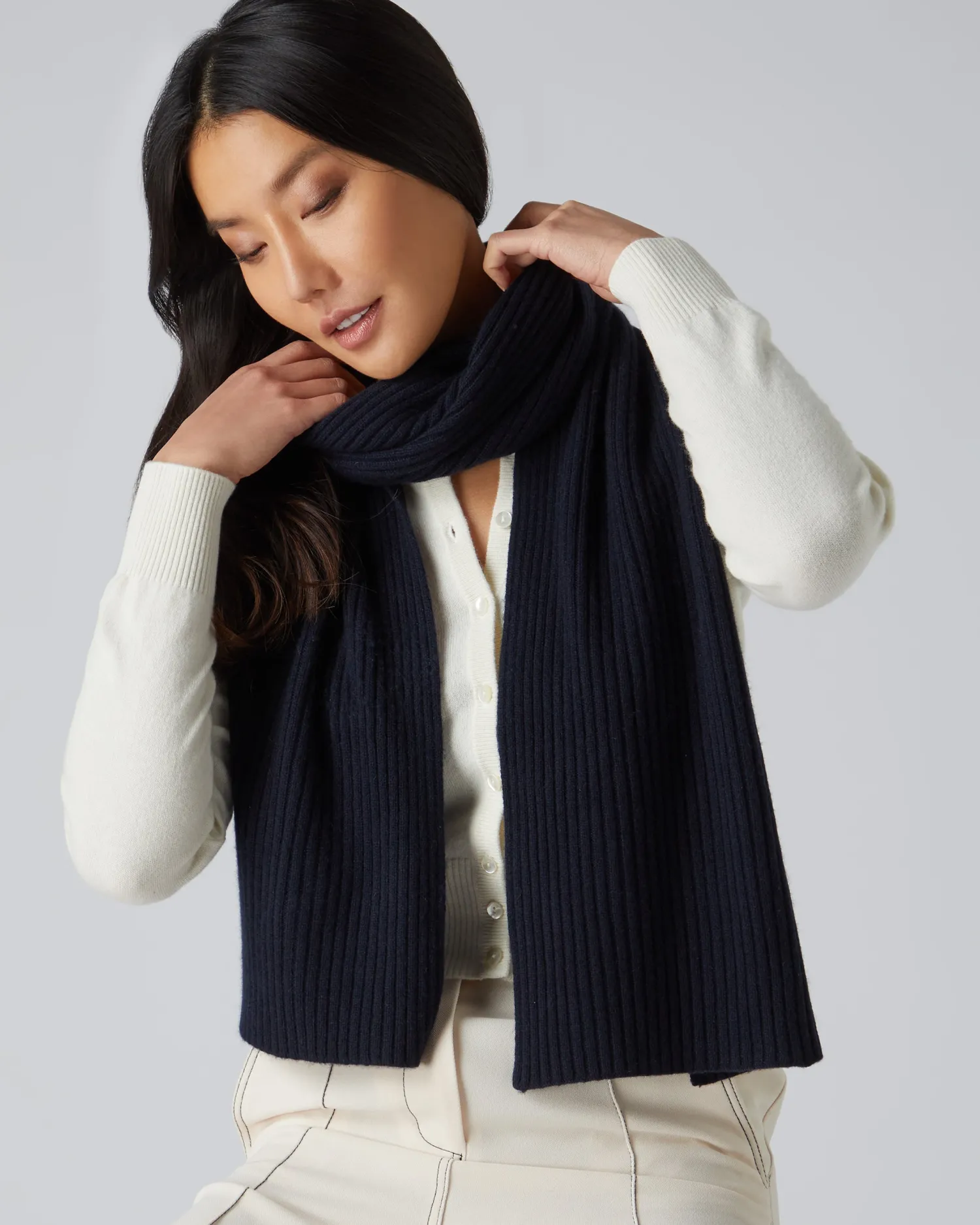 A truly exquisite cashmere ribbed knit scarf, amazing with so many outfits. Made from 100% Mongolian Organic Cashmere – Measures 178x30cm – Generously sized – A perfect addition to any wardrobe – Fabulous gift- Care: Hand Wash Organic cashmere: organic dyes and detergents, free from fertilizer and pesticides, find out more herenFind our range of Cashmere Scarves here.