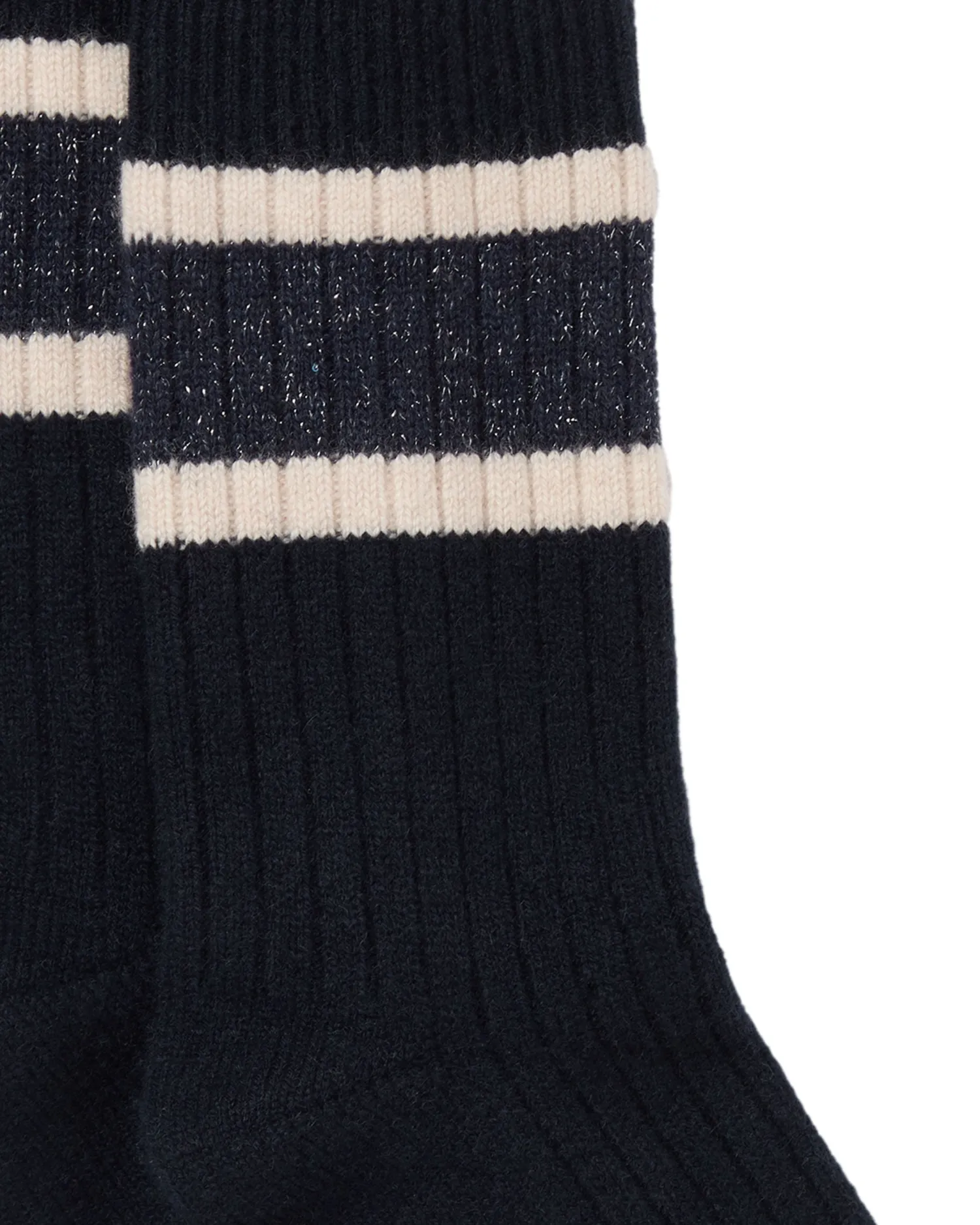 Elevate your everyday essentials with our new ribbed knit striped socks. Made from 94% organic Mongolian cashmere and 6% Nylon – Featuring a ribbed texture with bold stripes in ecru- Luxuriously soft and comfortable – Perfect for cold weather – The perfect winter gift – 2ply – Care: Hand Wash Organic cashmere: organic dyes and detergents, free from fertilizer and pesticides, find out more here