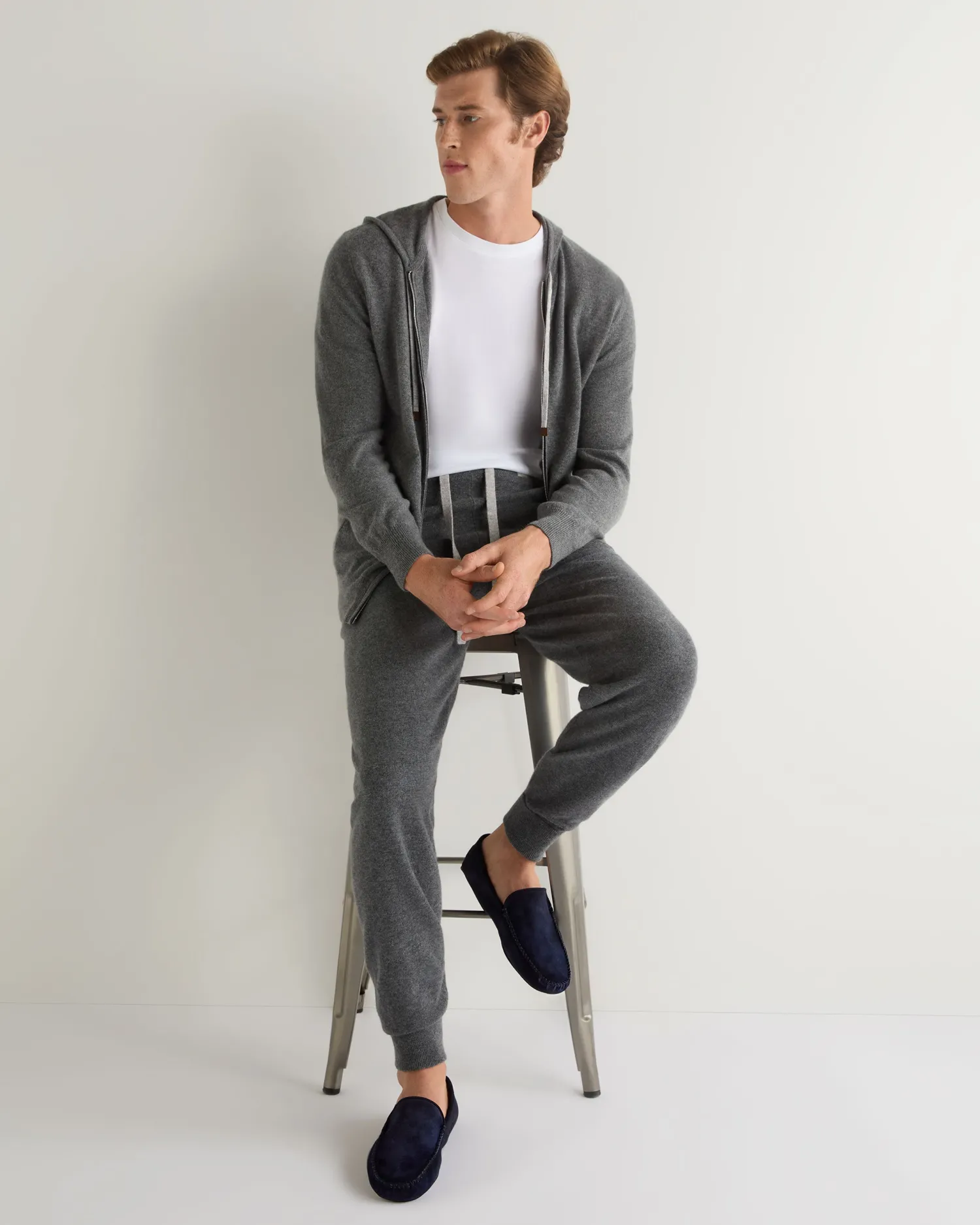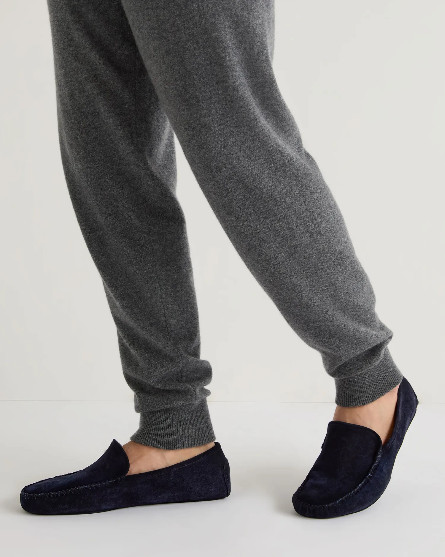 Step into comfort with N.Peals new unisex soft suede leather moccasin.n Made from 100% suede 100% organic Mongolian cashmere lining Featuring a contrasting knitted cashmere innersole The perfect house shoe, ideal for lounging at home Extremely soft and comfortable Care: Dry Clean Only