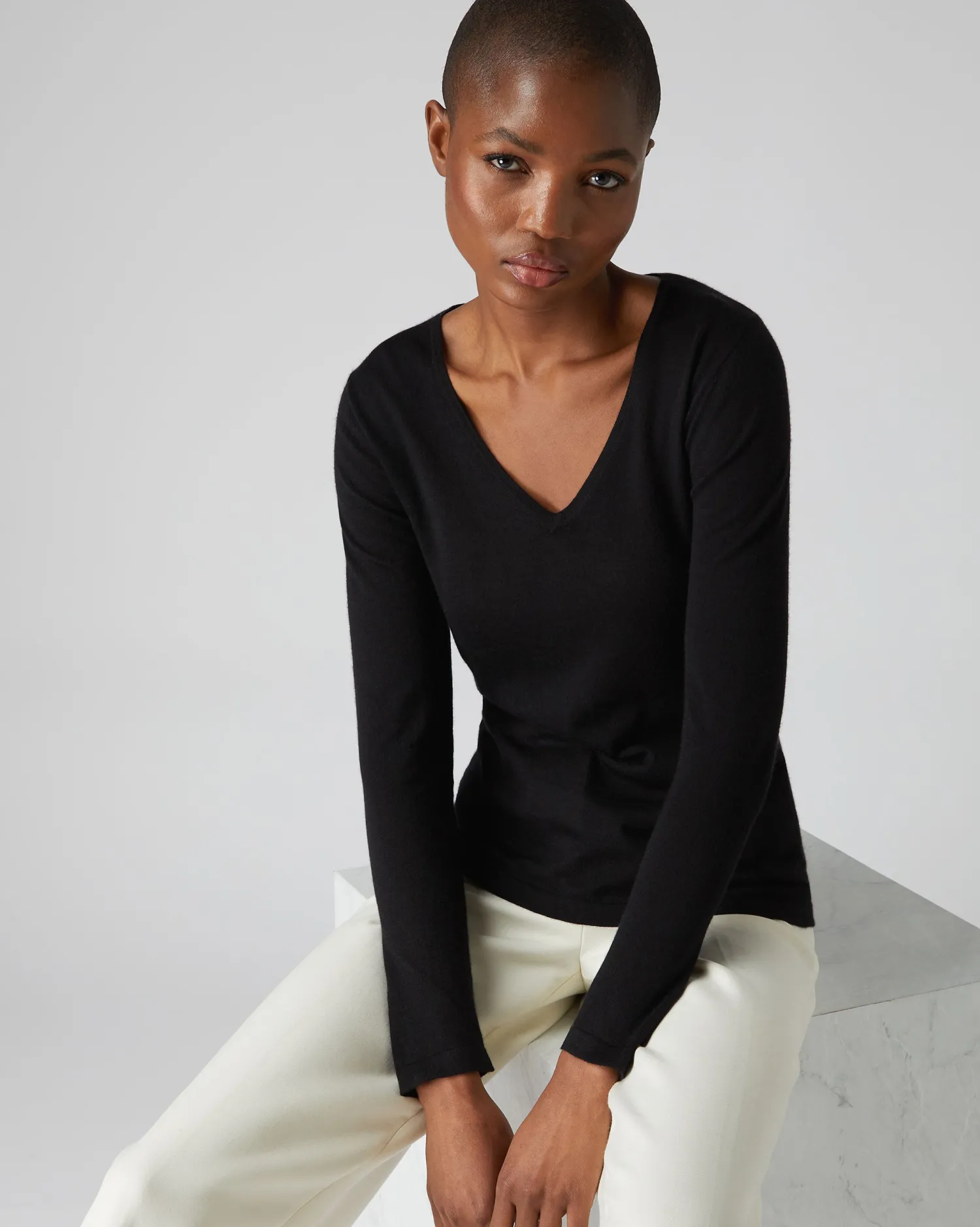 Indulge yourself with this beautiful superfine V neck cashmere sweater. 100% Mongolian worsted Cashmere – Yarn spun finer to create a lightweight feel – Beautifully light and soft – Elegant V neck style – Great worn alone or layered- Our superfine products have a naturally slimmer fit, if you’d like a looser fit (like our other products) or are between sizes, we suggest you size up- Model is wearing a size Small- Care: Hand WashnFind our full range of Women’s Cashmere V Neck Jumpers here.
