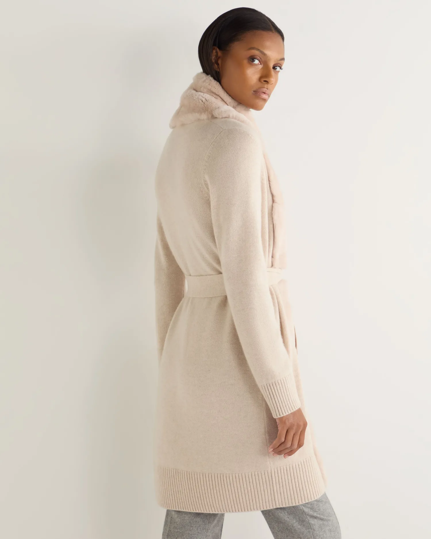 The Abbey fur placket cardigan from N.Peal combines refined luxury with everyday comfort. Made from 100% organic Mongolian cashmere and rex fur trim – Featuring beautiful sand brown fur along the placket – The warm, cosy knit ensures comfort throughout the season – Perfect for layering over sweaters or a simple T-shirt – Ideal for casual or formal settings – Luxuriously soft and comfortable, yet still so stylish – 2ply – Model is wearing size Small – Care: Dry Clean Only