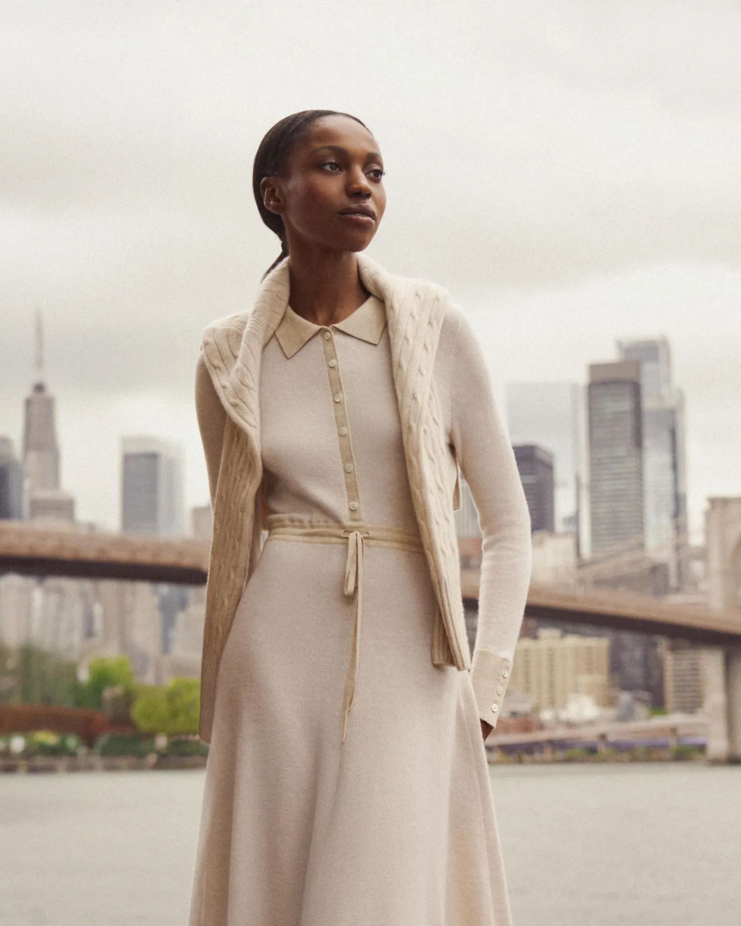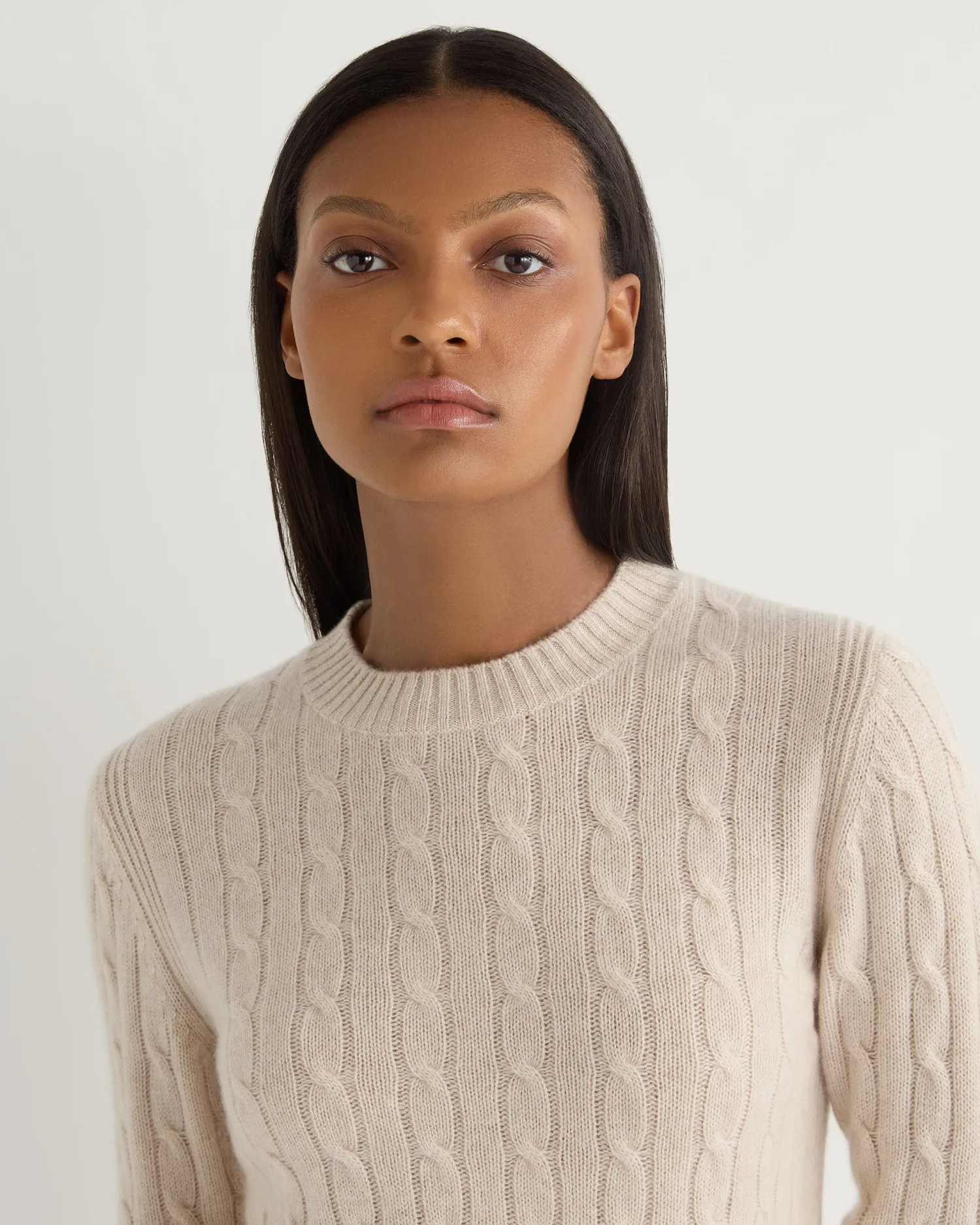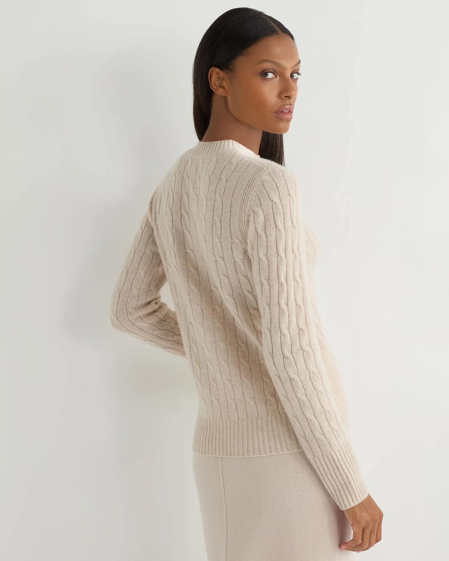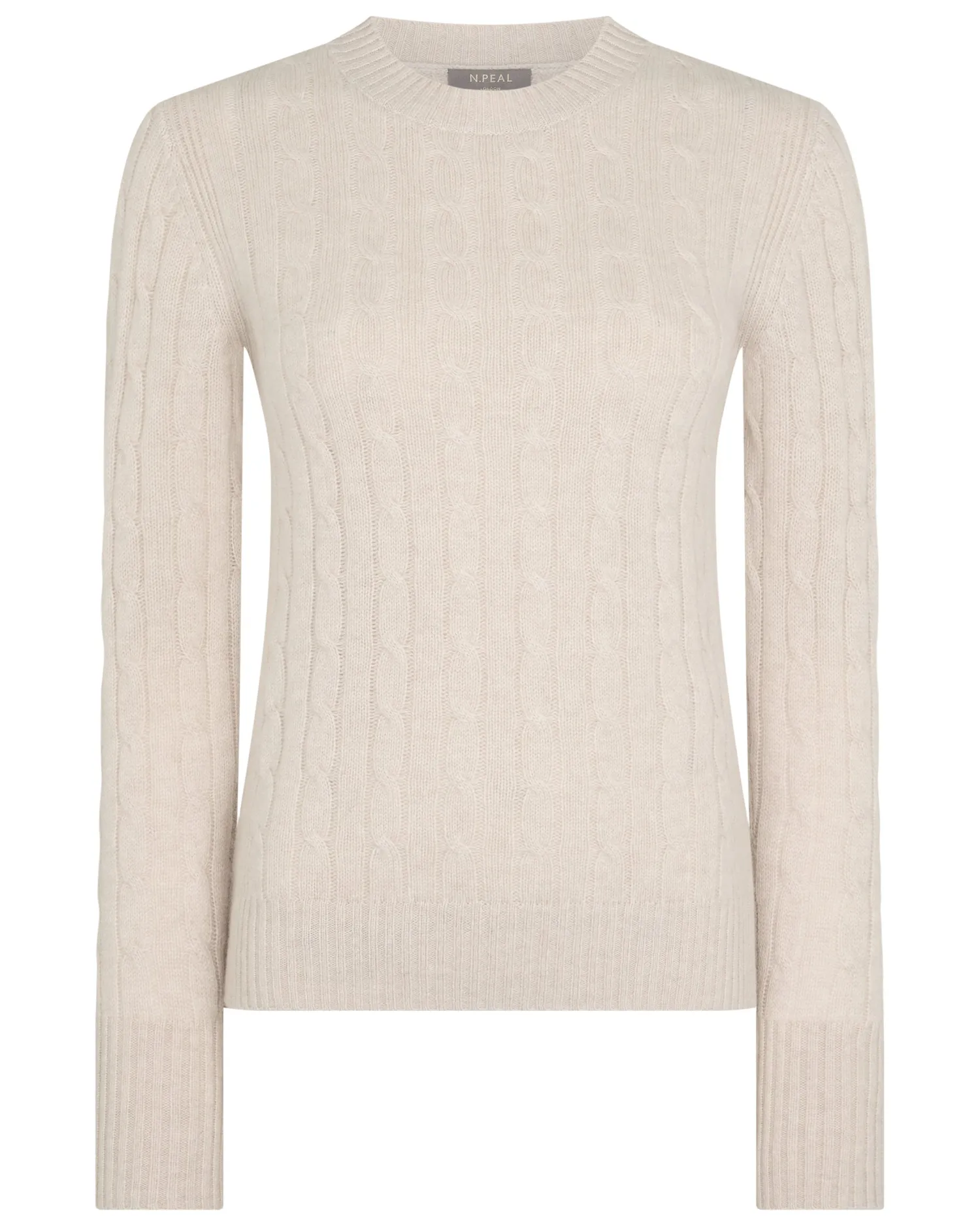 N.Peals new Adelyn cable round neck is a perfect blend of classic style and modern luxury. Made from the finest cashmere, this sweater features a beautifully intricate cable knit design that adds texture and elegance. Made from 100% Mongolian organic cashmere – Matching rib design on collar, hem and cuff – Classic, chic cable design – Incredibly soft and comfortable against the skin – 2ply – Model is wearing size Small – Care: Hand Wash Organic cashmere: organic dyes and detergents, free from fertilizer and pesticides, find out more here