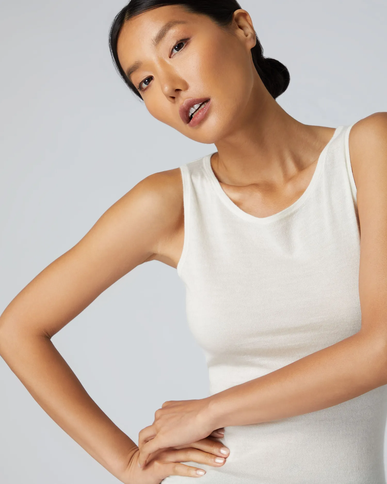 Try our beautiful weight superfine cashmere shell top, a versatile wardrobe addition. 100% worsted Cashmere – Yarn spun finer to create a lightweight feel – Beautifully light and soft – Round neck and sleeveless shape – Shell top style ideal for layering- Our superfine products have a naturally slimmer fit, if you’d like a looser fit (like our other products) or are between sizes, we suggest you size up- Model is wearing size Small- Care: Hand WashnFind our full range of Women’s Cashmere T Shirts here.