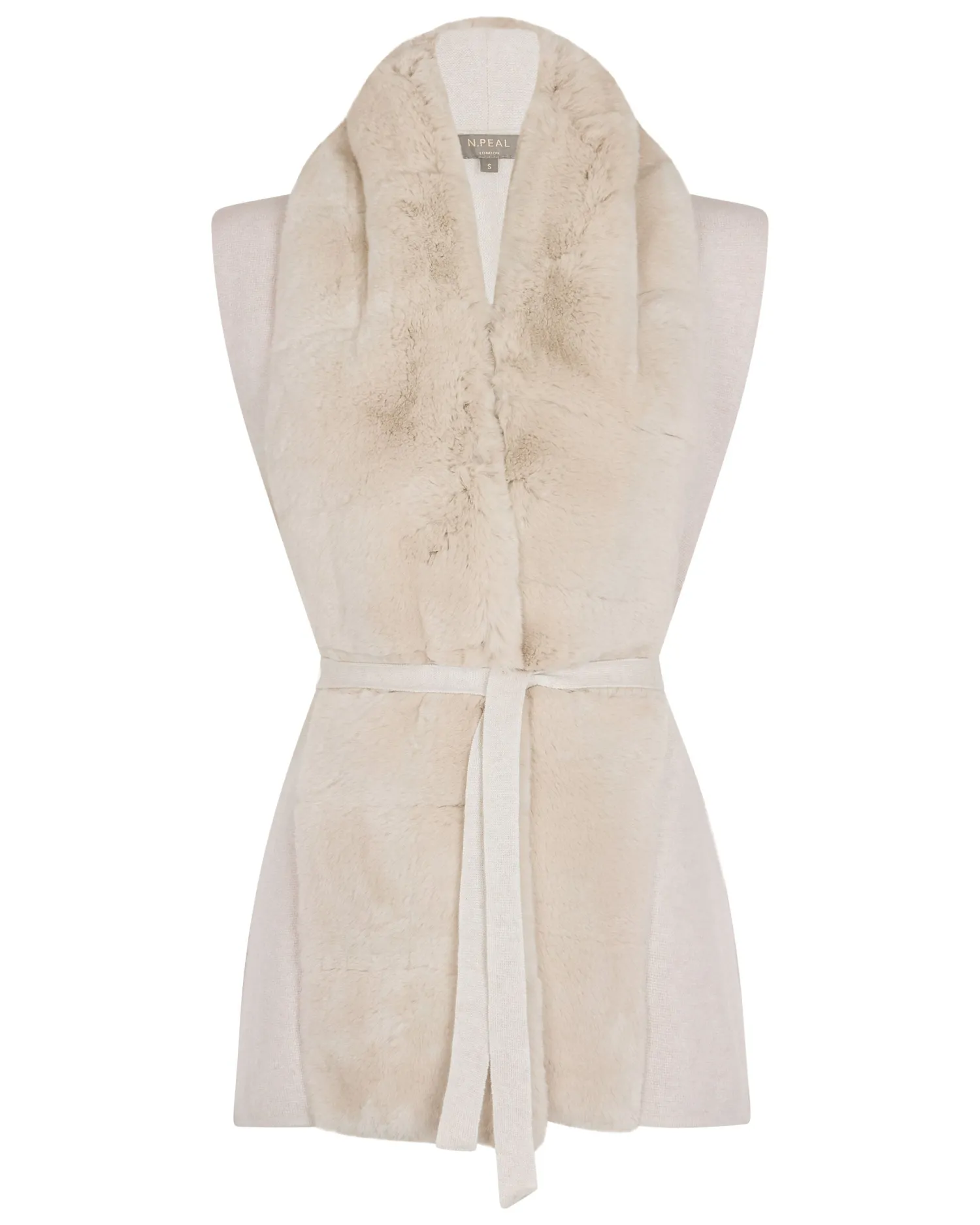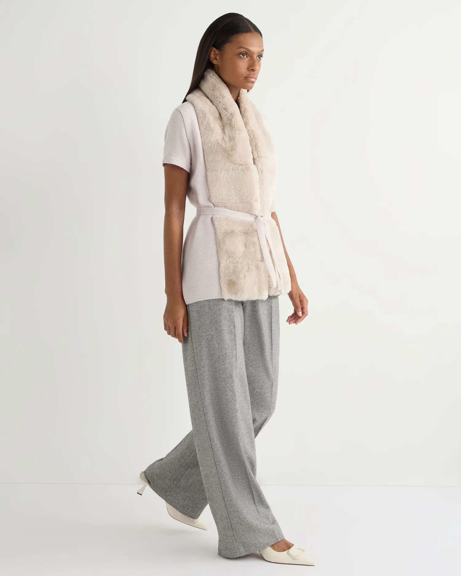 This popular style combines Milano stitch and fur trim – surely the perfect gilet? 100% Mongolian cashmere with Rex fur trim – Milano stitch cashmere for texture – Snow grey Rex rabbit fur placket trim – Stylish and flattering – 1ply – Model is wearing size Small – Care: Dry Clean Only