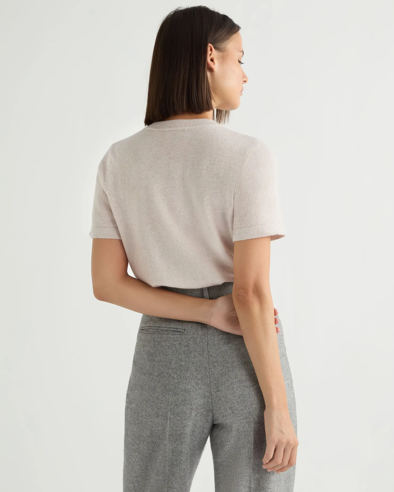 A modern new T-shirt style, sure to fit in every wardrobe. Made from 100% organic Mongolian cashmere – Beautifully soft against the skin, a pleasure to wear – A newer more modern cut to flatter all sizes – Tubular hem, cuffs and collar, really neat and stylish – 1ply- Model is wearing size Small – Care: Hand Wash Organic cashmere: organic dyes and detergents, free from fertilizer and pesticides, find out more heren