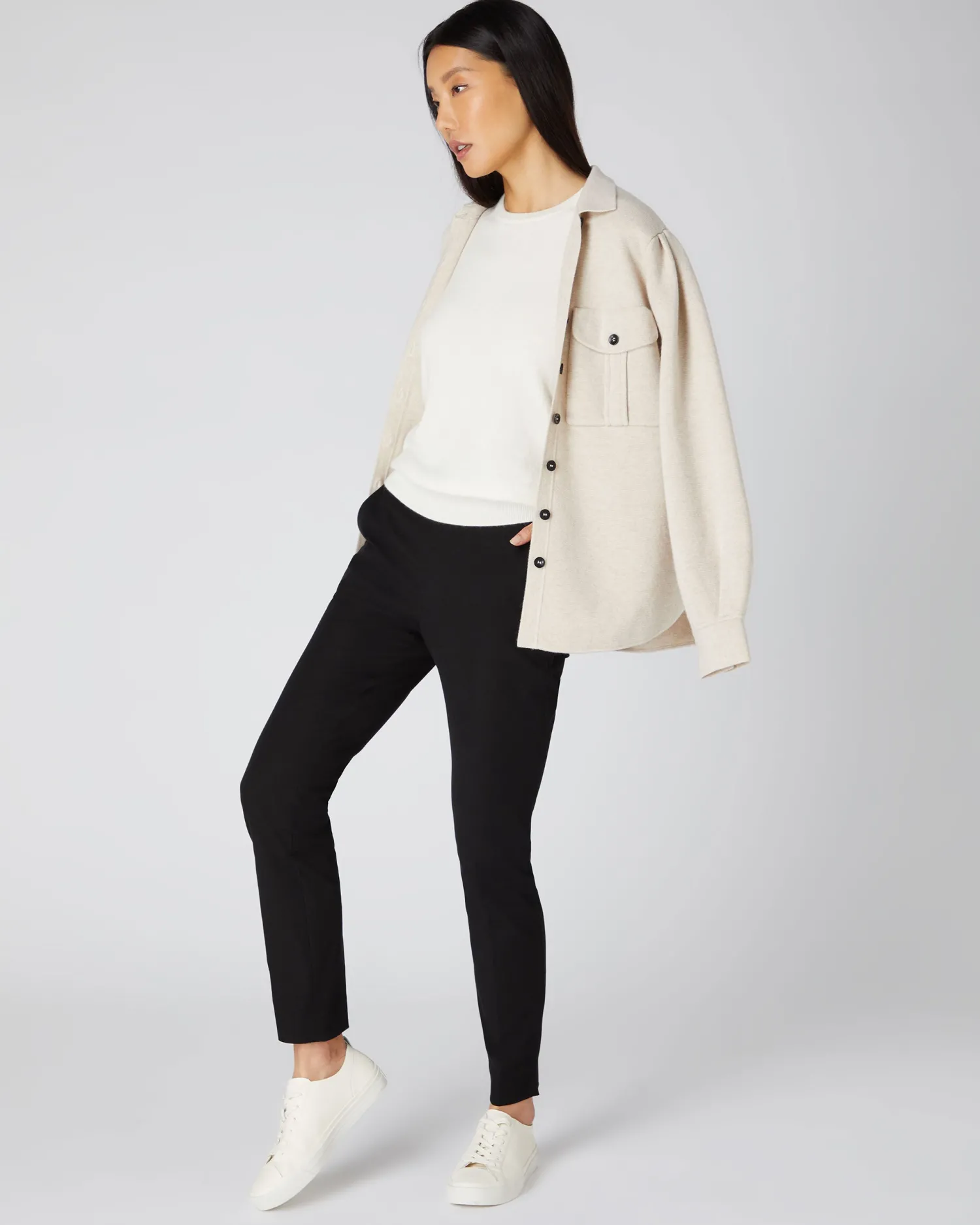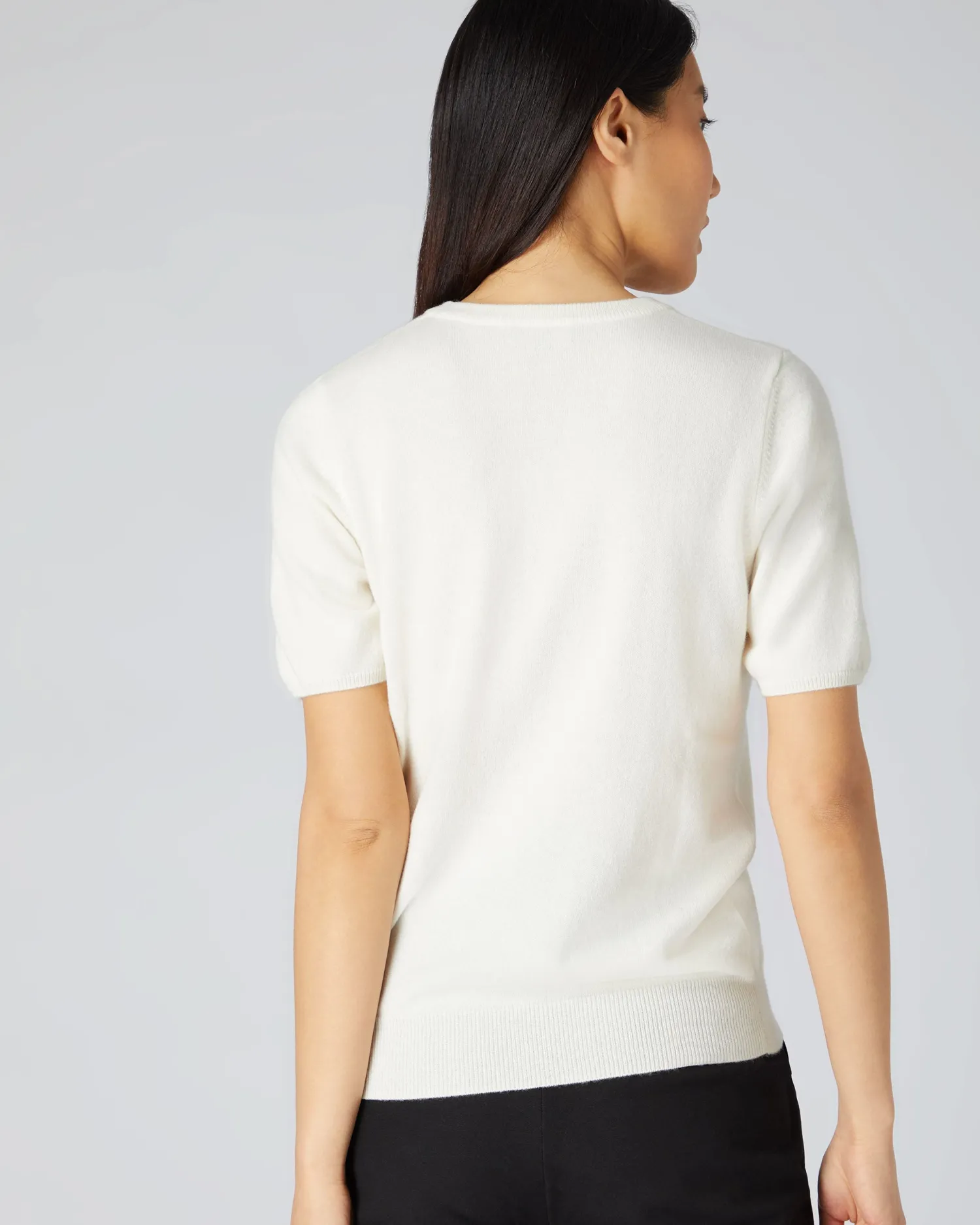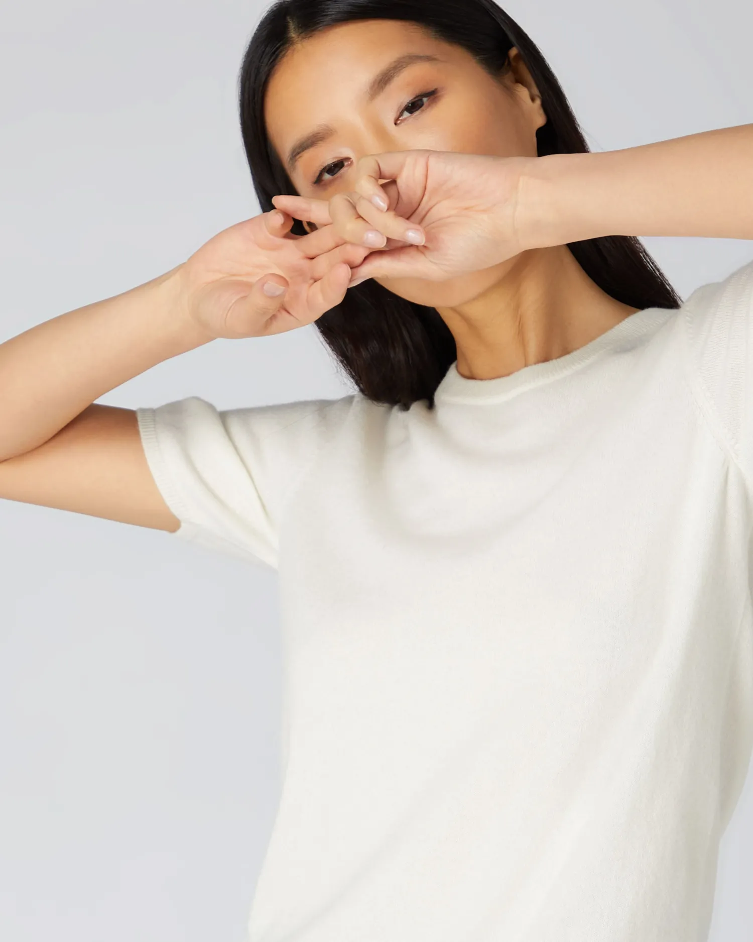 A fabulous piece to dress up or down – the cashmere round neck T shirt. 100% Mongolian Organic Cashmere – Flattering round neck style – Short sleeves – Perfect layering piece – Neat matching trim finish- Model is wearing size Small- Care: Hand Wash Organic cashmere: organic dyes and detergents, free from fertilizer and pesticides, find out more herenFind our full range of Women’s Cashmere T-Shirts here.